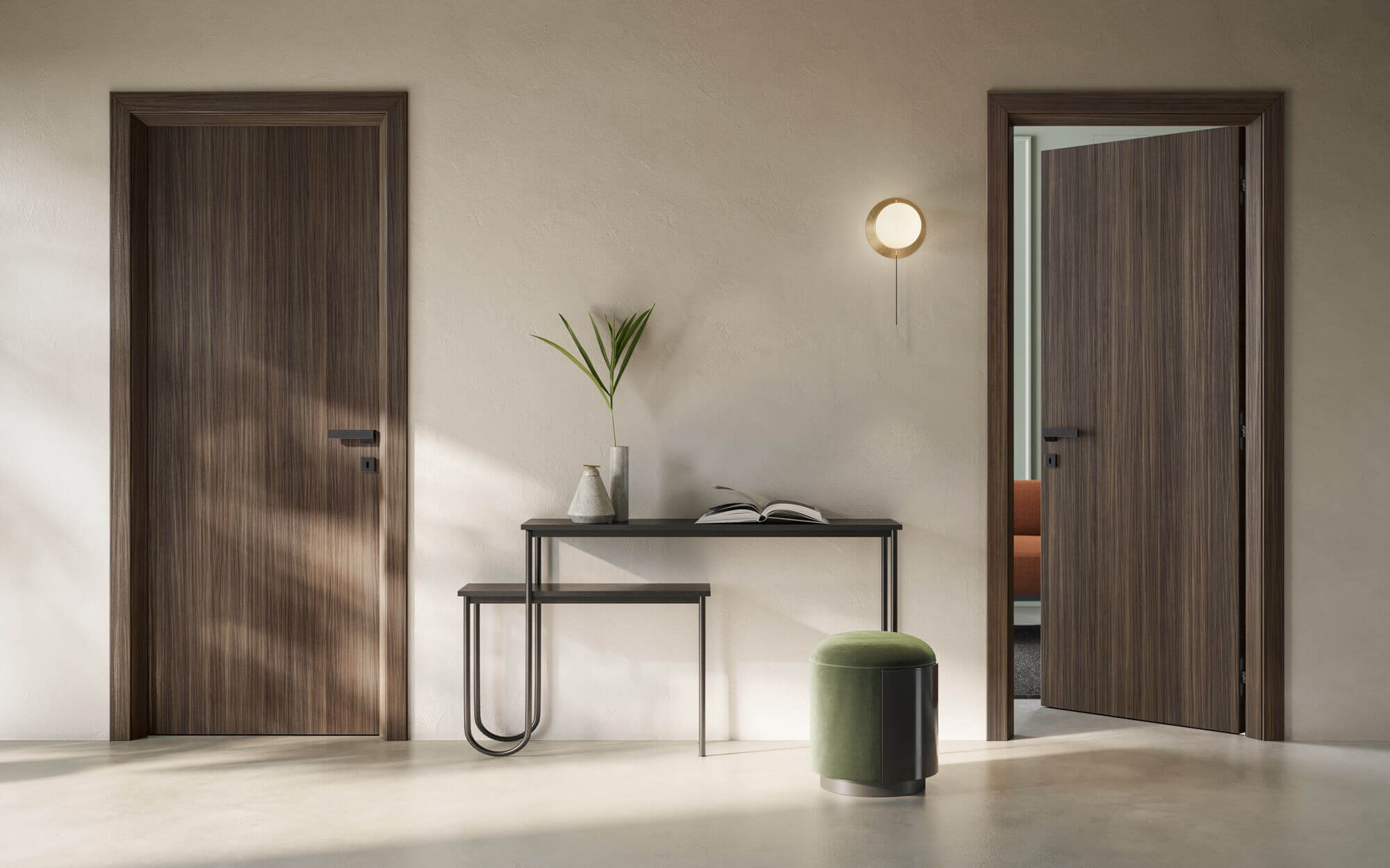 Disponibile în numeroase variante, forme și finisaje, aceste uși de înaltă calitate sunt inspirate din texturile din lemn ale migdalului, dar sunt disponibile și în Nuc tactil, Malaga și Super Matt. Printre noutățile coleției se numeră: înclinația tocului la 45 de grade pe latura „împinge”, pervaze coplanare cu ușa, balamale ascunse și încuietoare magnetică.